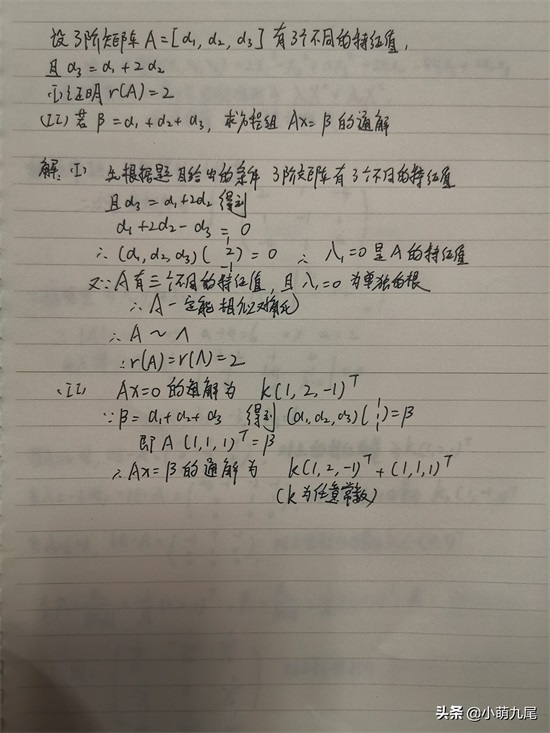 线性代数,特征值与矩阵的秩之间的关系,证明和求通解