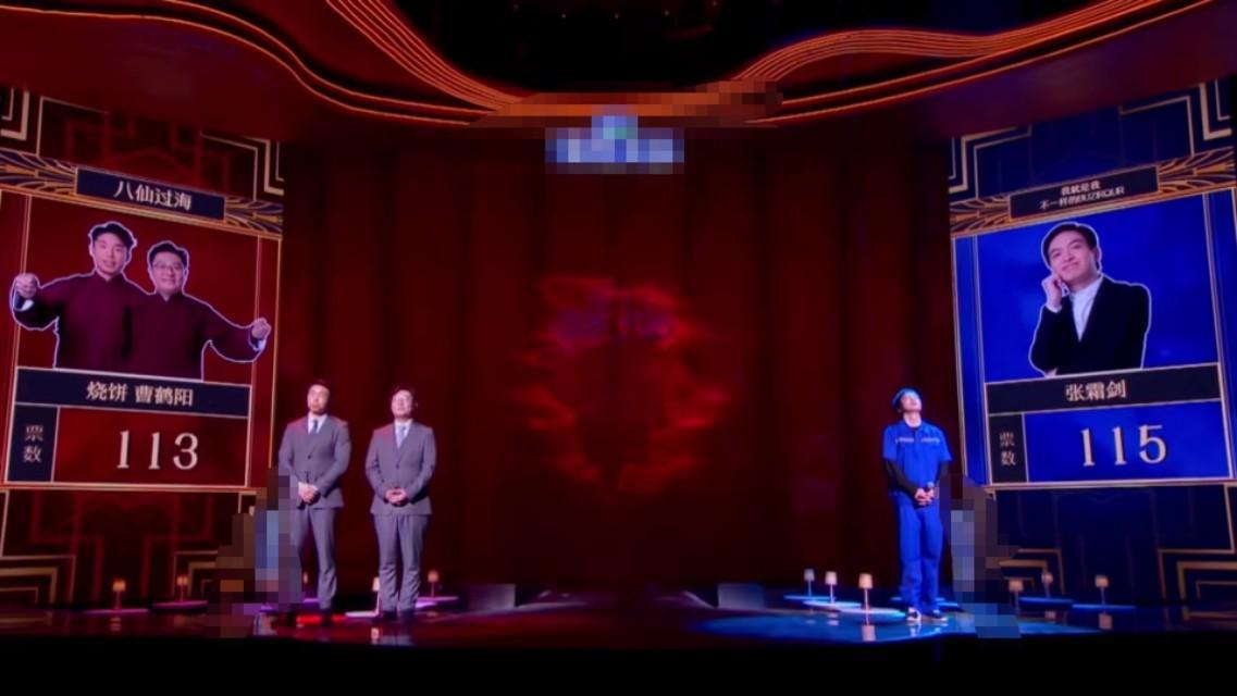 最后,烧饼曹鹤阳获得了113票,张霜剑获得了115票,以两票之差惨遭淘汰,遗憾离场,张霜剑进入喜剧人总决赛。