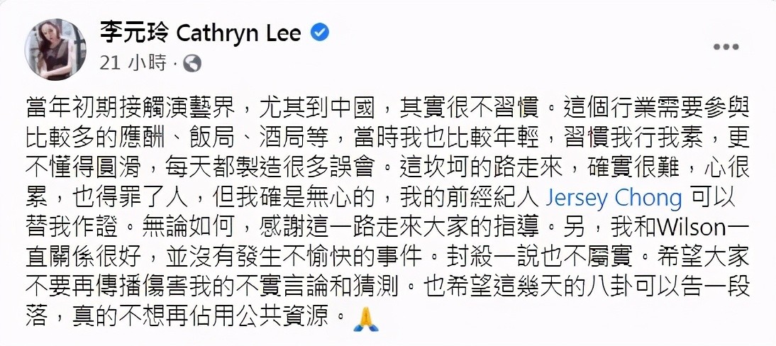 不过她马上删了这一条,重新发的内容则委婉说自己年轻不懂事,很多都是误会,前经纪人可以证明没有封杀这回事。