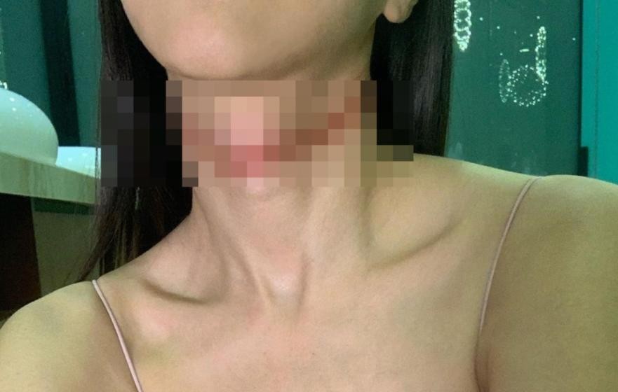 图中,李元玲的脖颈处有一条明显的红痕,看着就非常疼,不知道她是多么绝望才会有这个选择。
