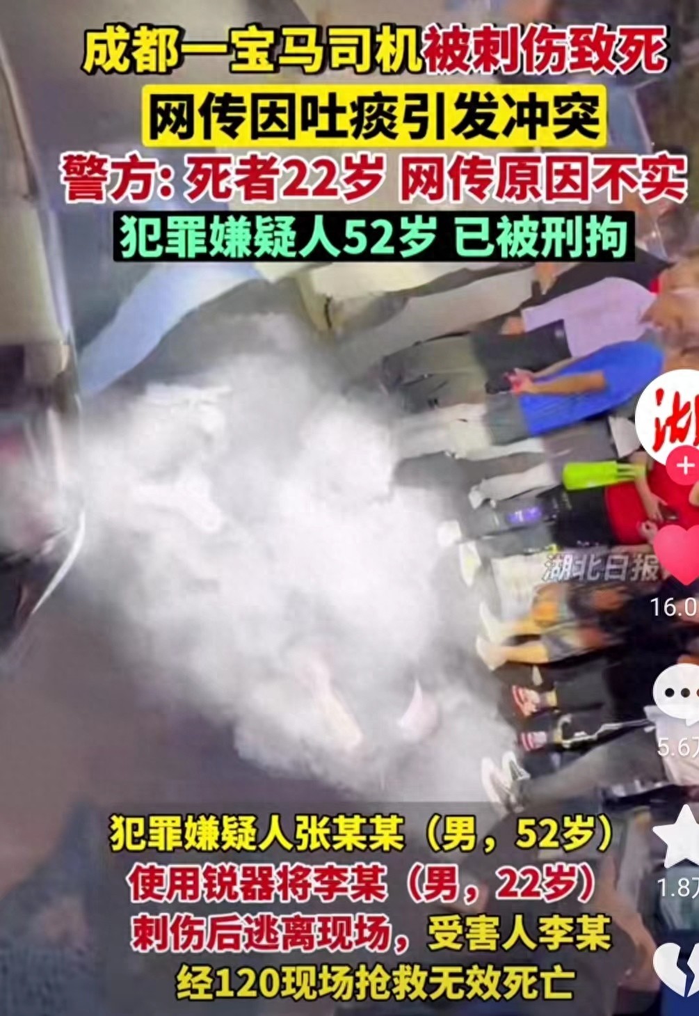这几天“成都宝马车主因吐痰发生命案”在网络上传得沸沸扬扬,不过就在今天下午,成都锦江警方通报称:传言不属实。
