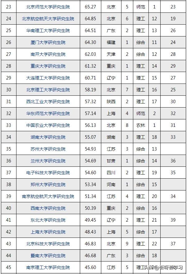 按照研究生院实力来看,39所985院校的排名都很靠前,果然这些院校实力还是名副其实的。像苏州大学、郑州大学等部分211院校排名甚至超过了一些985院校,可见近年来这些院校在教学、科研等方面发展迅猛。