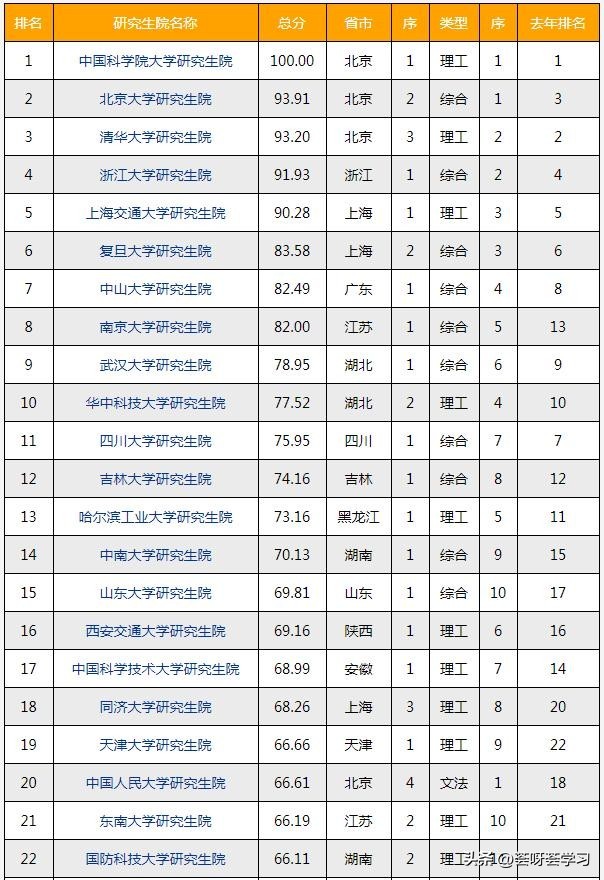 中国研究生院排名来啦!