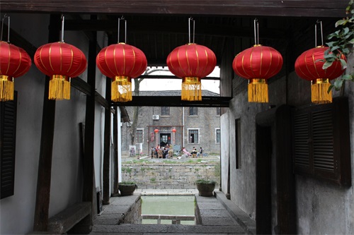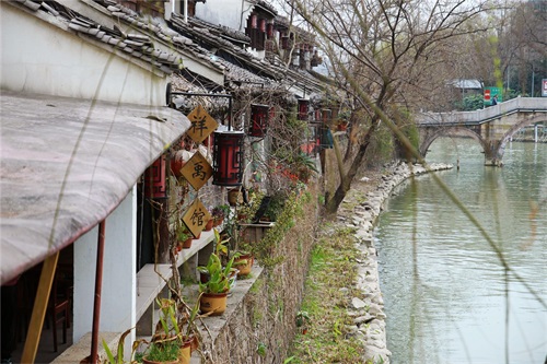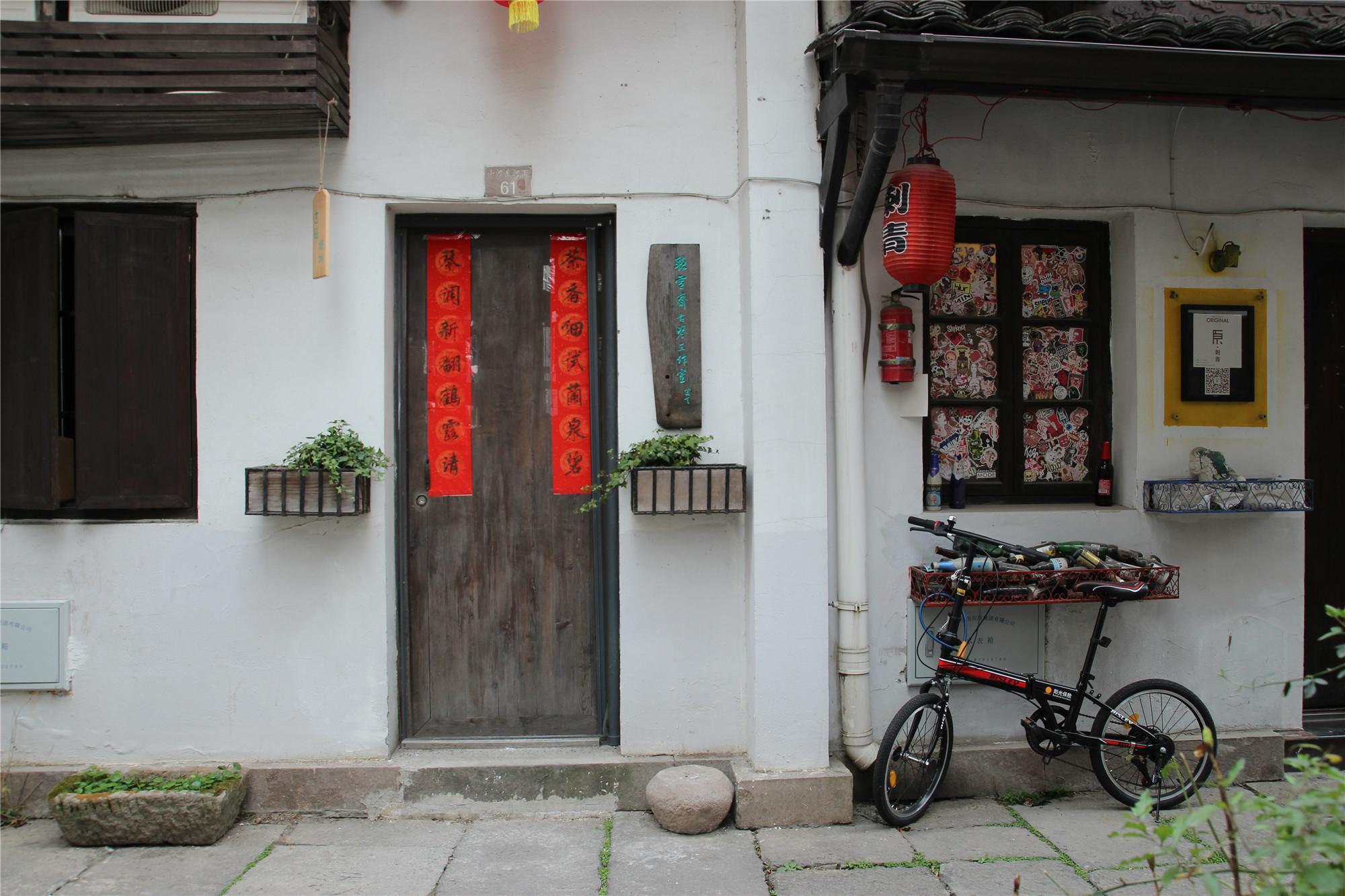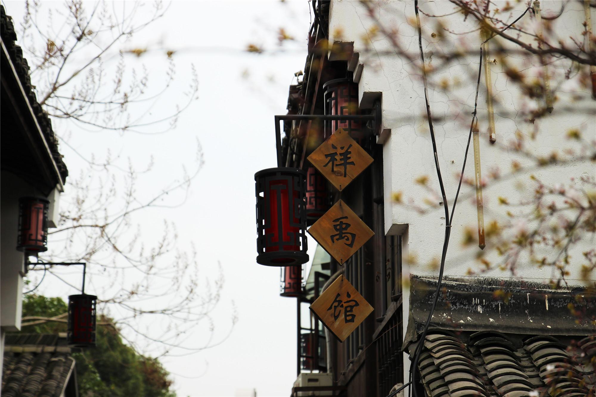 从公交车上下来后,我先去的古桥。站在桥上,可以纵览整个街区屋宇。这里的建筑,是典型的江南水乡风格,虽没有乌镇、西塘那样惊艳,但是平淡的外表下,多的却是祥和。沿河有一些商铺,挂着老式的木制招牌。看得出,这里的主色调是复古。