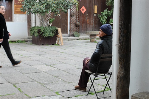 老街很长,乍一看并没有和其他老街有什么大的区别,但是细细留心,还是能发现不少亮点的。它的商业化气息并不浓厚,所以你很难看到像其他古镇老街那样,沿街卖着千篇一律的商品。这里的店铺,多以文艺、优雅为主。钢琴室、花店、茶馆、医馆,干净整洁。老人坐在路边,闲看云卷云舒。草丛的黄狗在安详沉睡,河对岸的居民在老树下闲散打牌,工人在装修着老房屋。时光慢慢的流淌,一切都是那么安详。