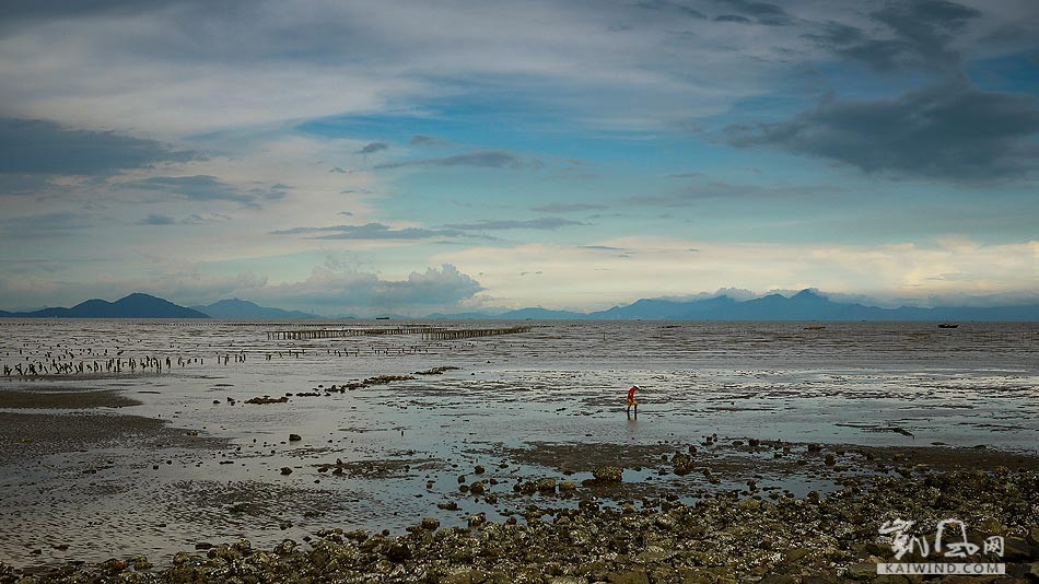 滩涂上捉鱼的人们,岛上物种非常丰富,想必食材也是又新鲜又美味的。