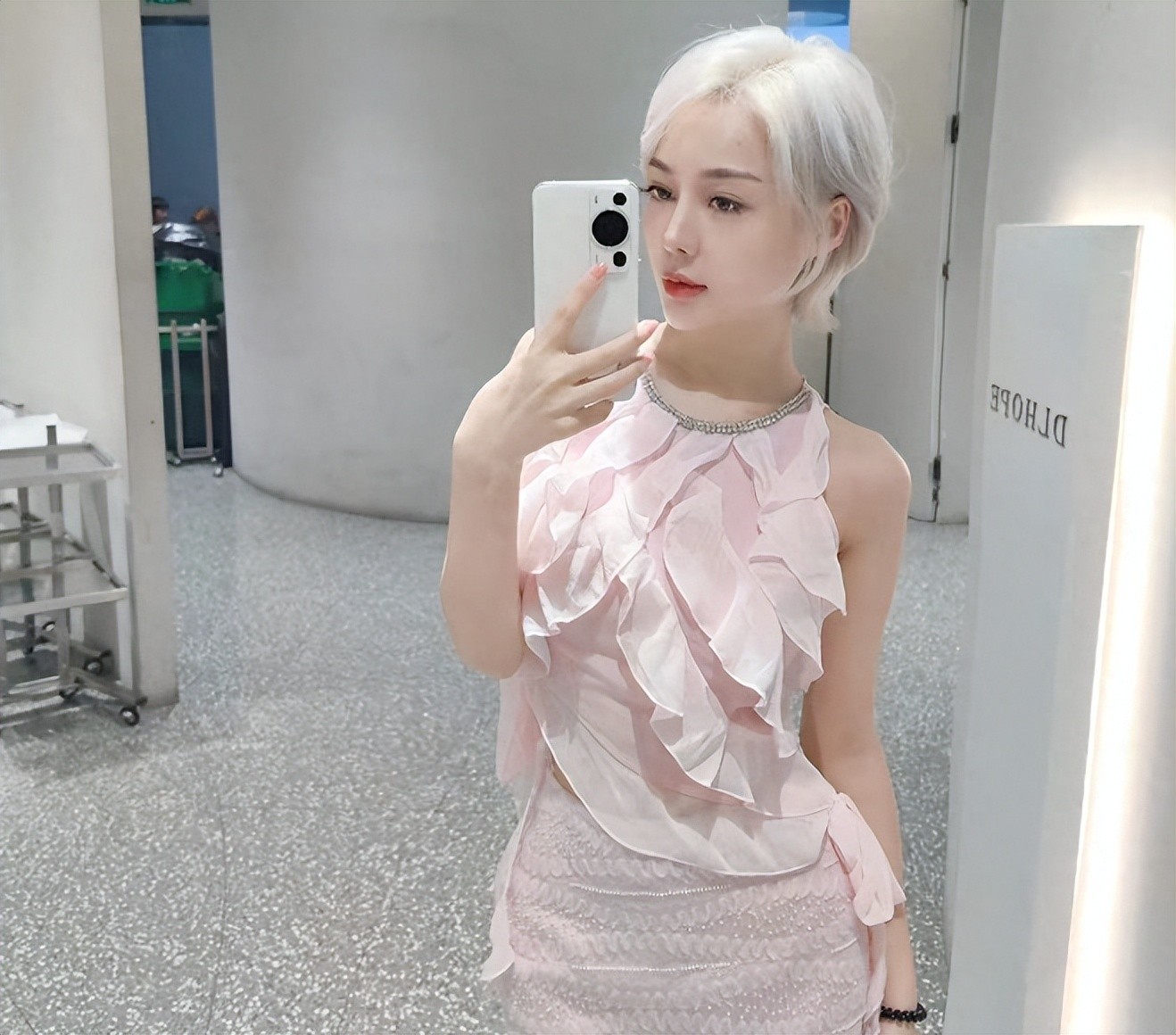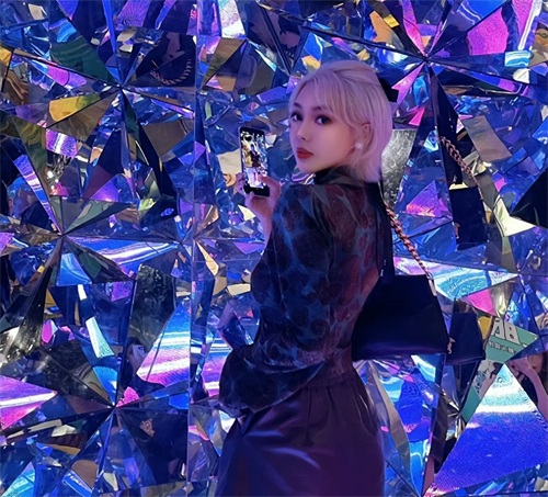 一头女团同款发色,加上精致大浓妆,穿着清凉,乍一看以为是娱乐圈的爱豆或者是大网红。