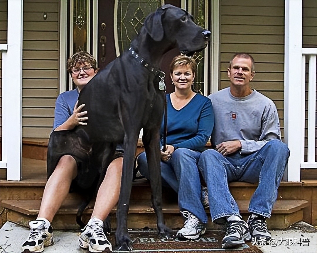 这只大丹犬于2013年进入吉尼斯世界纪录。用4只爪子站立时的高度为112厘米,用后腿站立时的高度为213厘米。他有一个合适的名字——“宙斯”,体重165公斤。正如它的主人所说,这只狗每月增重近30公斤。他在吃狗粮。可惜2014年的《宙斯》在6岁时去世。