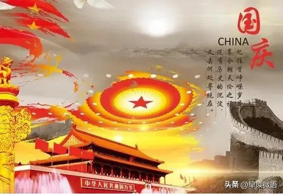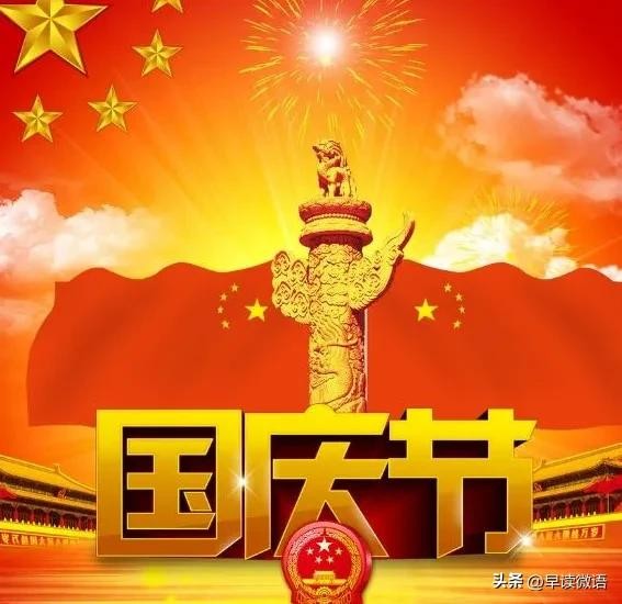 9、山河壮丽,岁月峥嵘!举国英豪开新局,中天丽日庆长春。祝福我们的国家繁荣富强,祝福我们的生活步入小康,国庆节快乐!