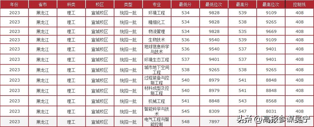 宣城校区理工类招生专业以传统工科为主,报考热度跟录取分数一致。