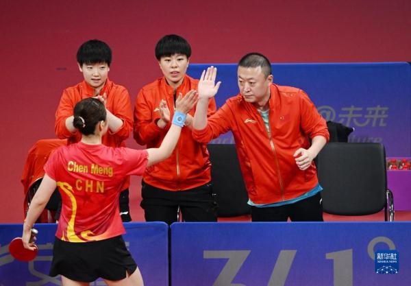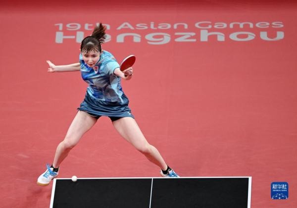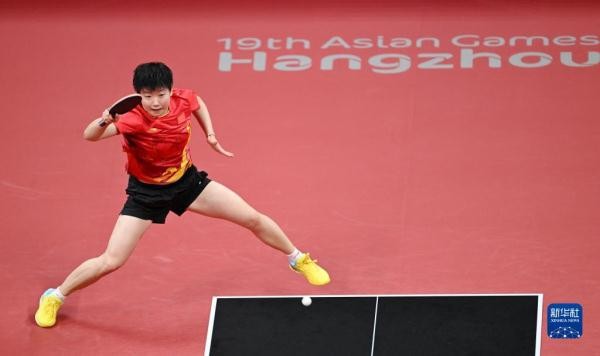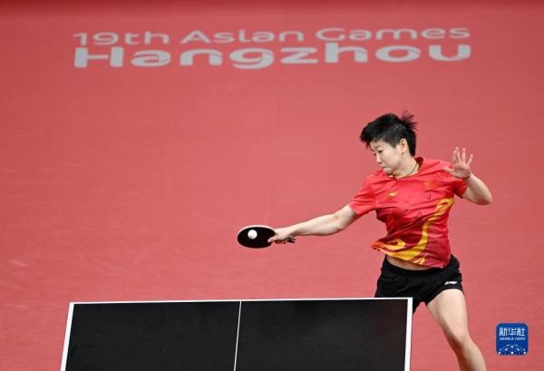 当日,在杭州亚运会乒乓球项目女子团体决赛中,中国队以3比0战胜日本队,夺得冠军。