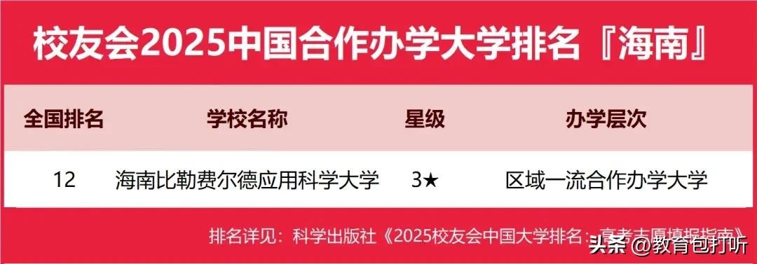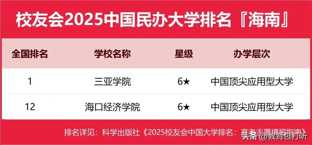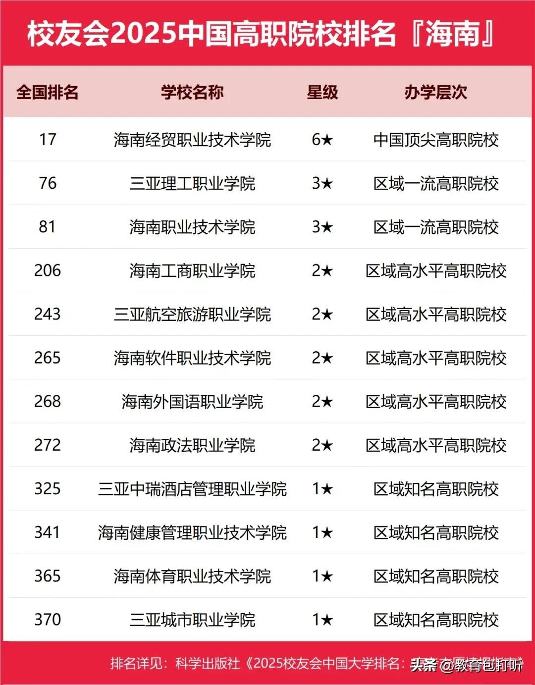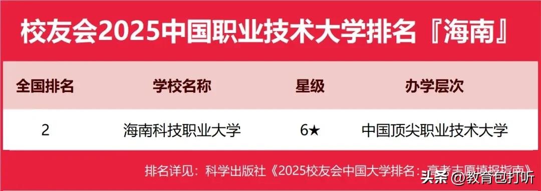 海南目前有12所高职院校,几乎是没有了解过,只能看下校友会的排名了。具体情况如下: