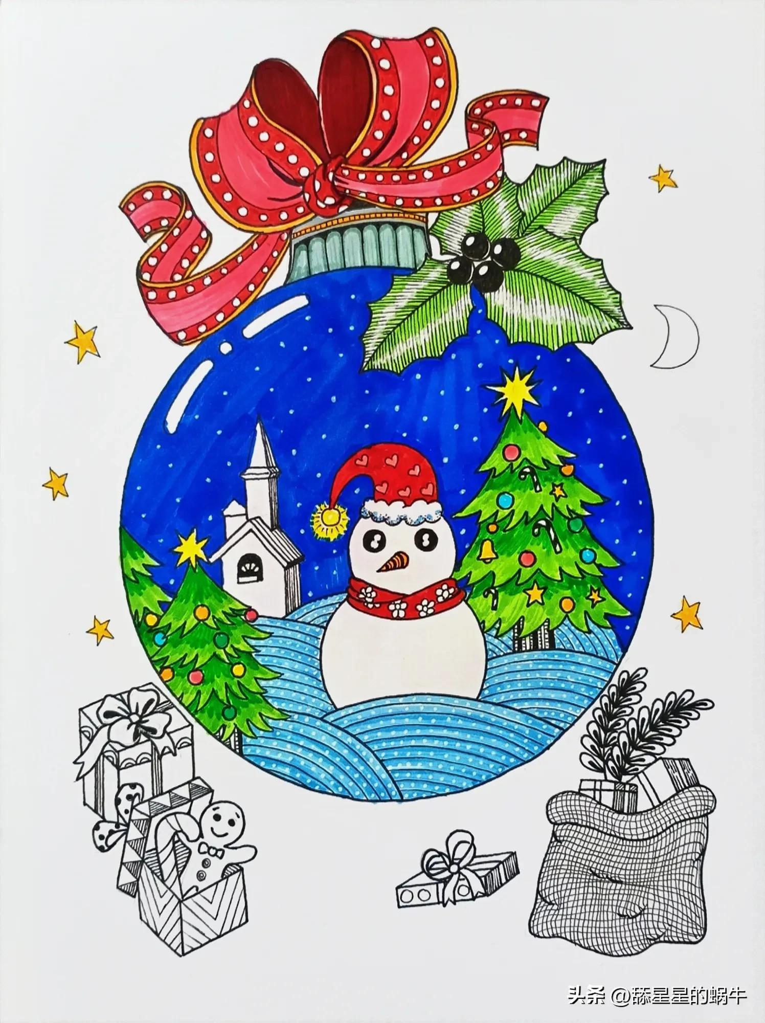彩色线描画‖色彩练习《圣诞快乐》图文版