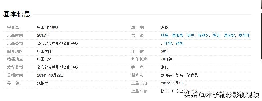 《中国刑警803》是公安部金盾影视文化中心、北京骏蝶影视文化有限公司、浙江唐德影视股份有限公司等联合制作的刑侦剧,由张族权执导,张磊、董维嘉、陆玲、陈颢文等主演。