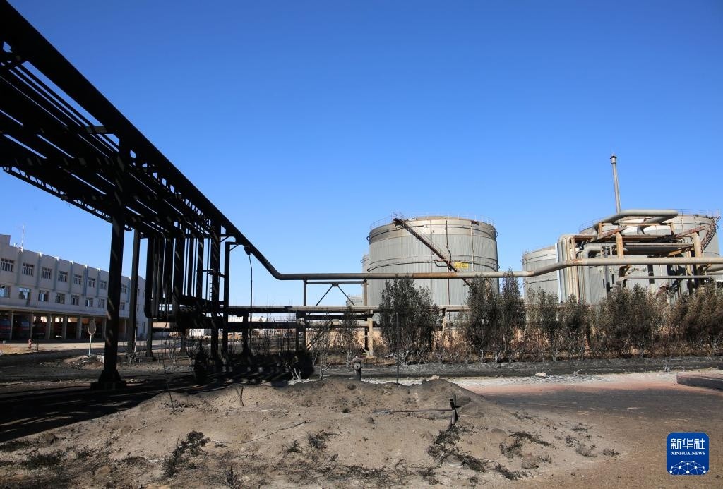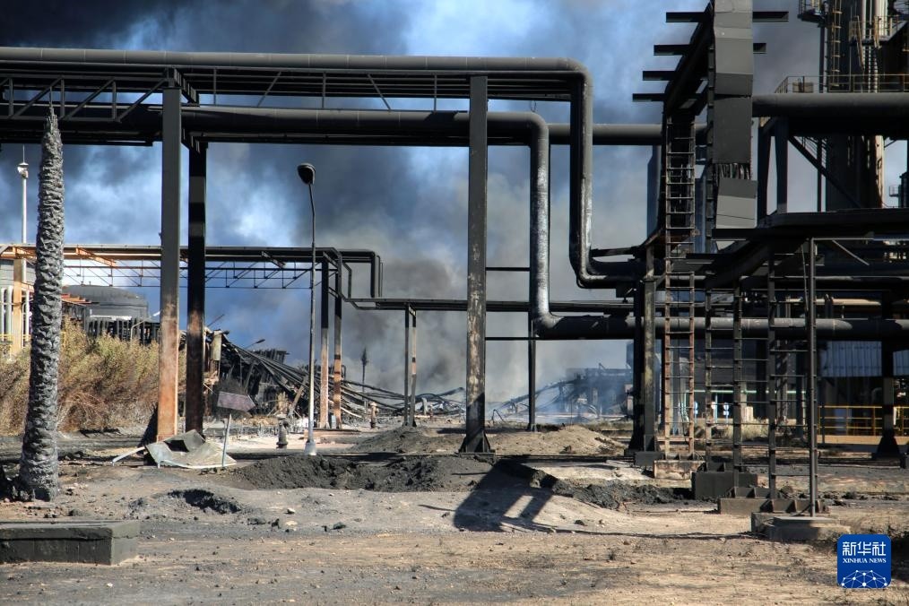 这是1月26日在苏丹首都喀土穆北部杰利地区拍摄的遭破坏的喀土穆炼油厂。