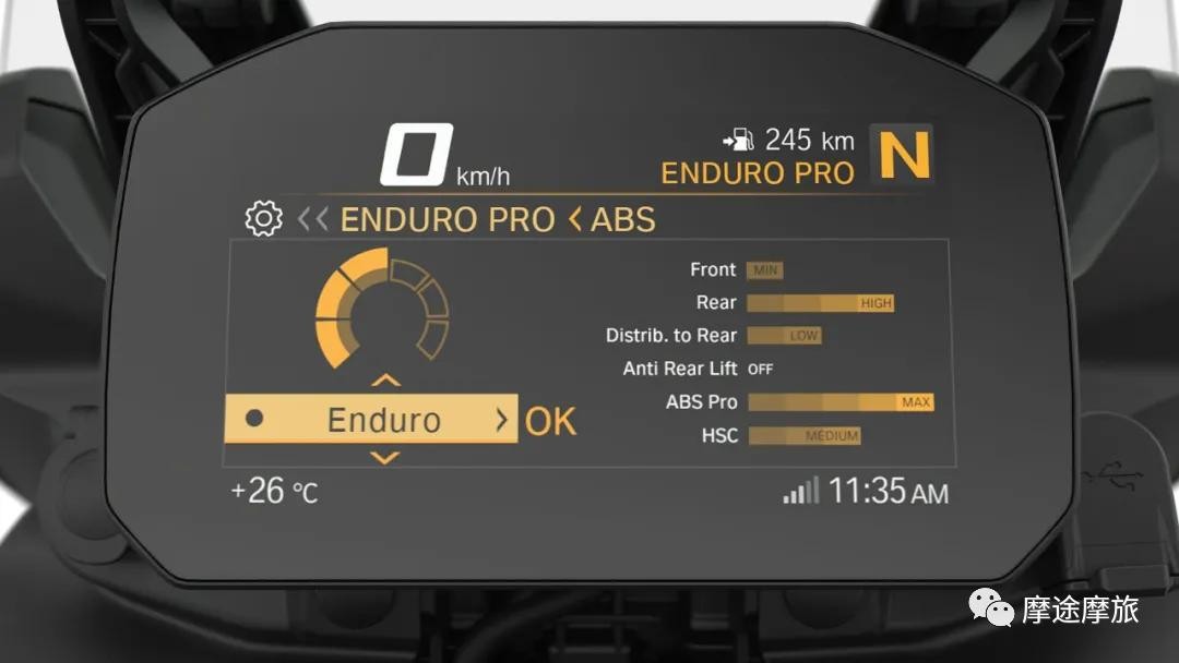 五种驾驶模式,宝马F850 GS带来全场景驾驶乐趣:Road公路、Rain雨天、Dynamic运动、Enduro越野、Enduro Pro专业越野模式。