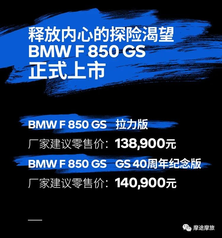 宝马F850GS 拉力版:售价138900元宝马F850GS 40周年纪念版:售价140900元