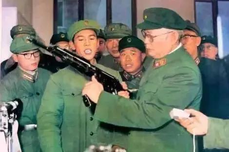 左3是时任南京军区司令员的许世友上将,身着“55式”士兵军服,佩戴上等兵军衔。