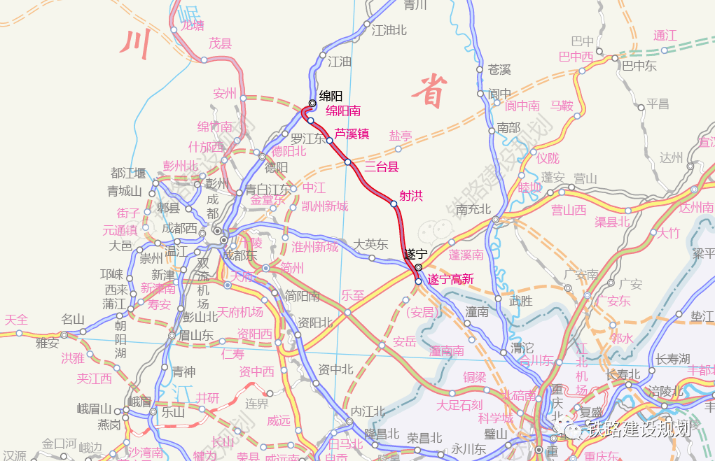 绵遂内铁路绵遂段规划示意图