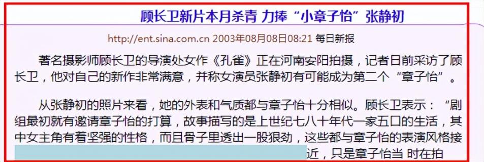 2003年,顾长卫在拍电影《孔雀》,跟姜1的儿子,直接冲向演员表,给张静初一巴掌就是一巴掌,张静初惊呆了。