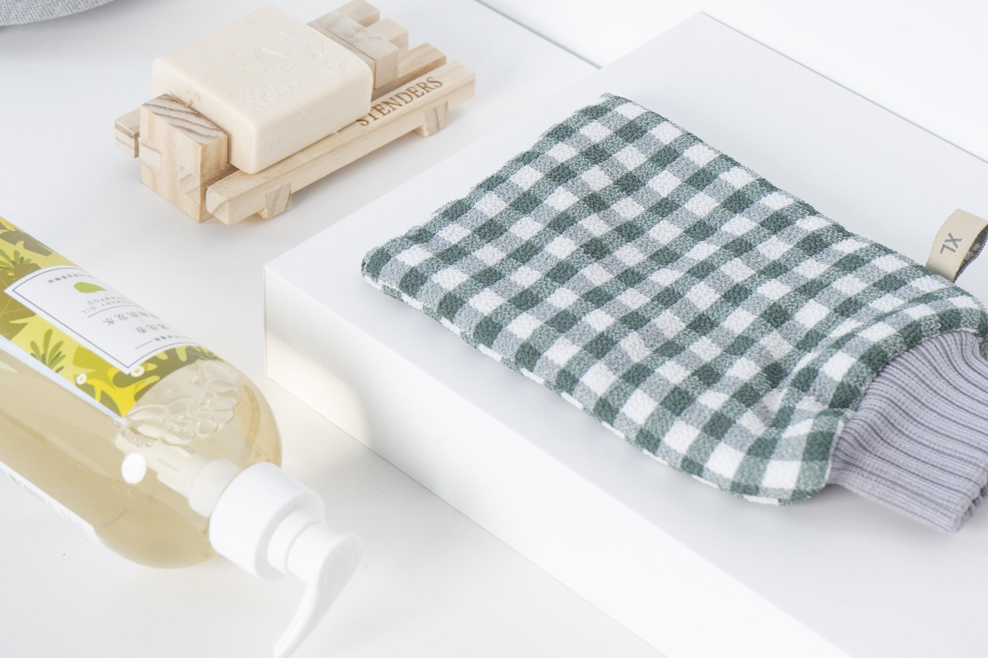 超高颜值设计搭配磨砂澡巾面料,符合人体曲线也更容易让老化角质被搓下。