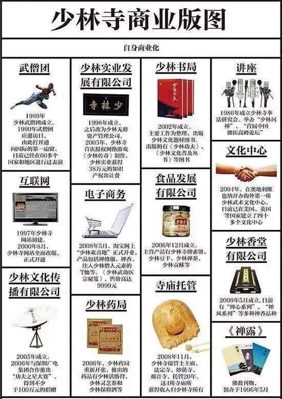 少林寺的商业版图,更是横跨多个行业,令人咋舌。