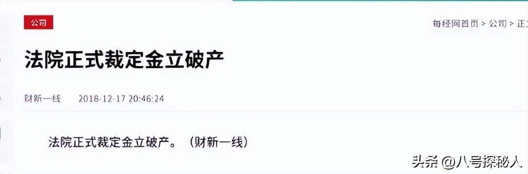 参考资料:法院正式裁定金立破产.每经网 [引用日期2018-12-17]