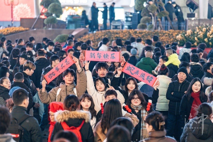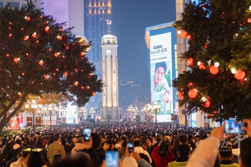 据了解,解放碑听新年钟声是重庆最具辨识度、最有仪式感的群众自发跨年活动。近两年来,央视新闻频道与渝中融媒体中心紧密合作,组建采访团队,及时向全球华人实时报道解放碑跨年盛况。