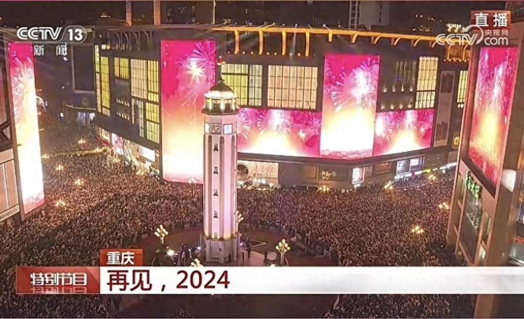 2024年12月31日11时57分,央视新闻频道再次实时转播了市民、游客自发齐聚解放碑,共同聆听跨年钟声的震撼瞬间。