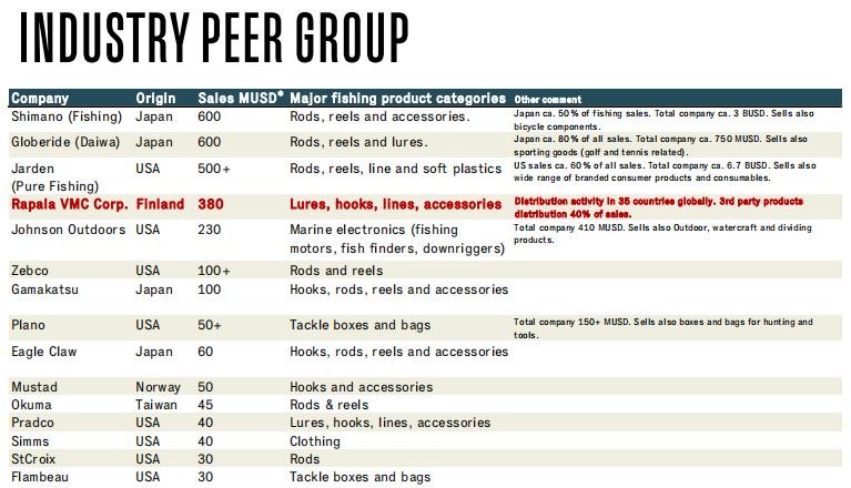 数据来源Helsinki(芬兰赫尔辛基股票)Rapala VMC Corporation (RAP1V.HE)财报中获取的,行业主要竞争对手相关数据。