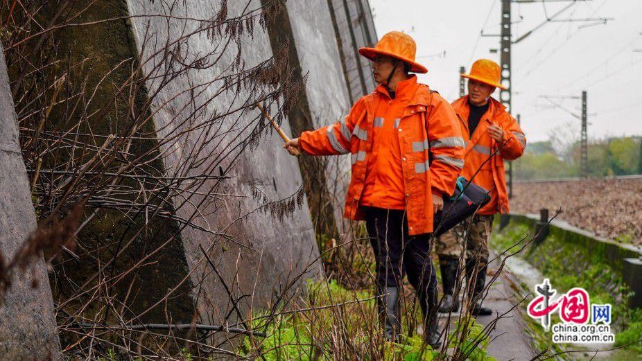 2025年3月28日萍乡工务段萍乡路桥车间党支部党员突击队成员在沪昆线沿线开展防洪巡查,确保设备状况良好。 周柳东 摄
