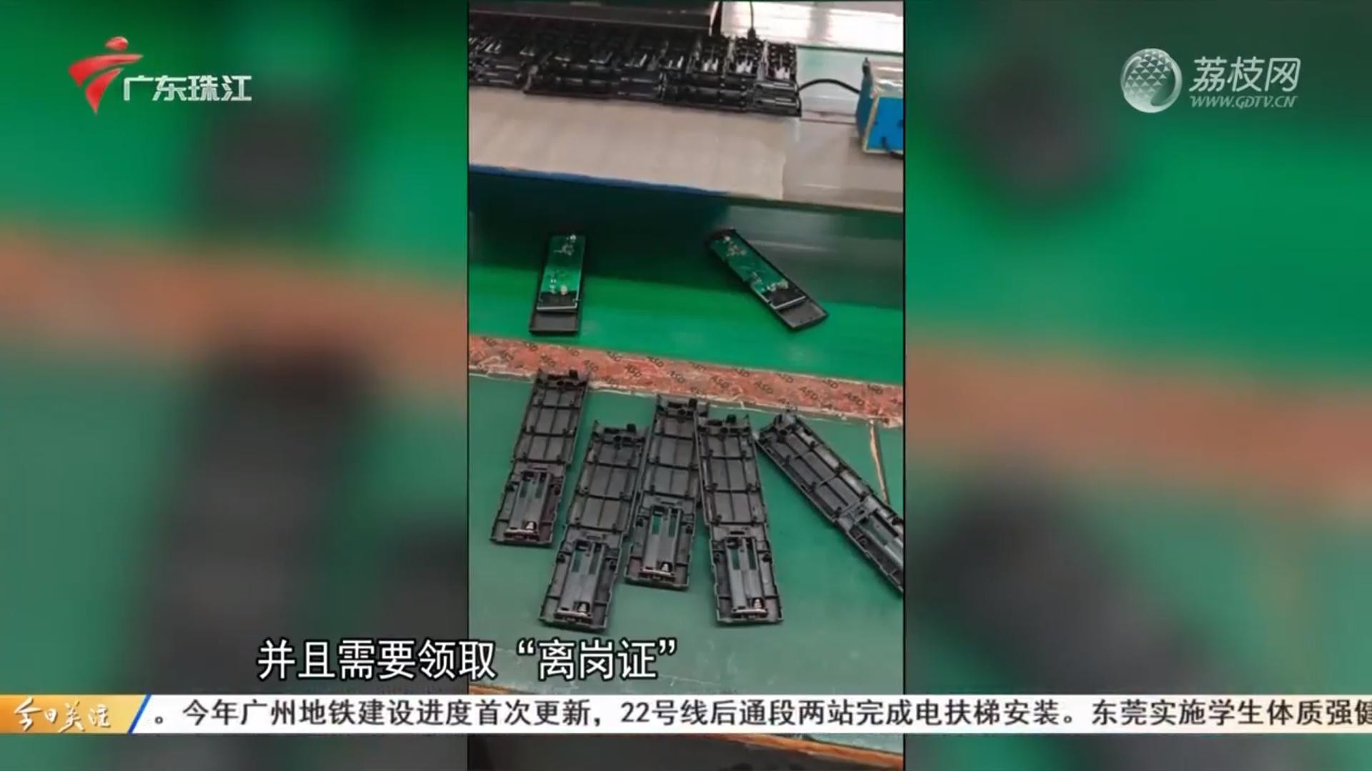 小刘向记者提供了一张印有绿色卡片的照片称,该卡片就是“离岗证”,上厕所时必须携带。小刘说,除限制上厕所时间之外,工厂每天工作12小时,期间没有午休等休息时间;第一次上班迟到罚款50元,第二次及之后就按200元一次罚款处理。