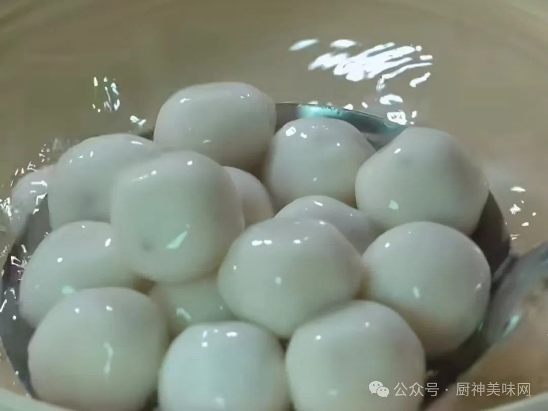 【步骤详解】第一步:煮汤圆——先定型,再油炸开水下锅,煮至汤圆浮起(约1分钟),立刻捞出过冷水。这一步能让汤圆表皮收缩,不易破皮。 关键细节:煮汤圆时加一勺盐,既能防止粘连,还能让表皮更筋道!