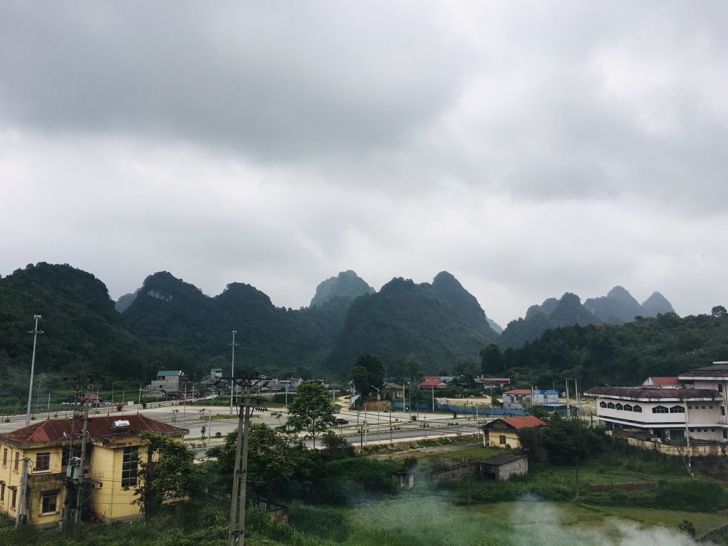站在护龙村的平台上近距离眺望越南境内的人文聚落与自然峰丛。龙邦口岸与越南高平省茶岭县相邻,再继续往南就是高平省会高平市。