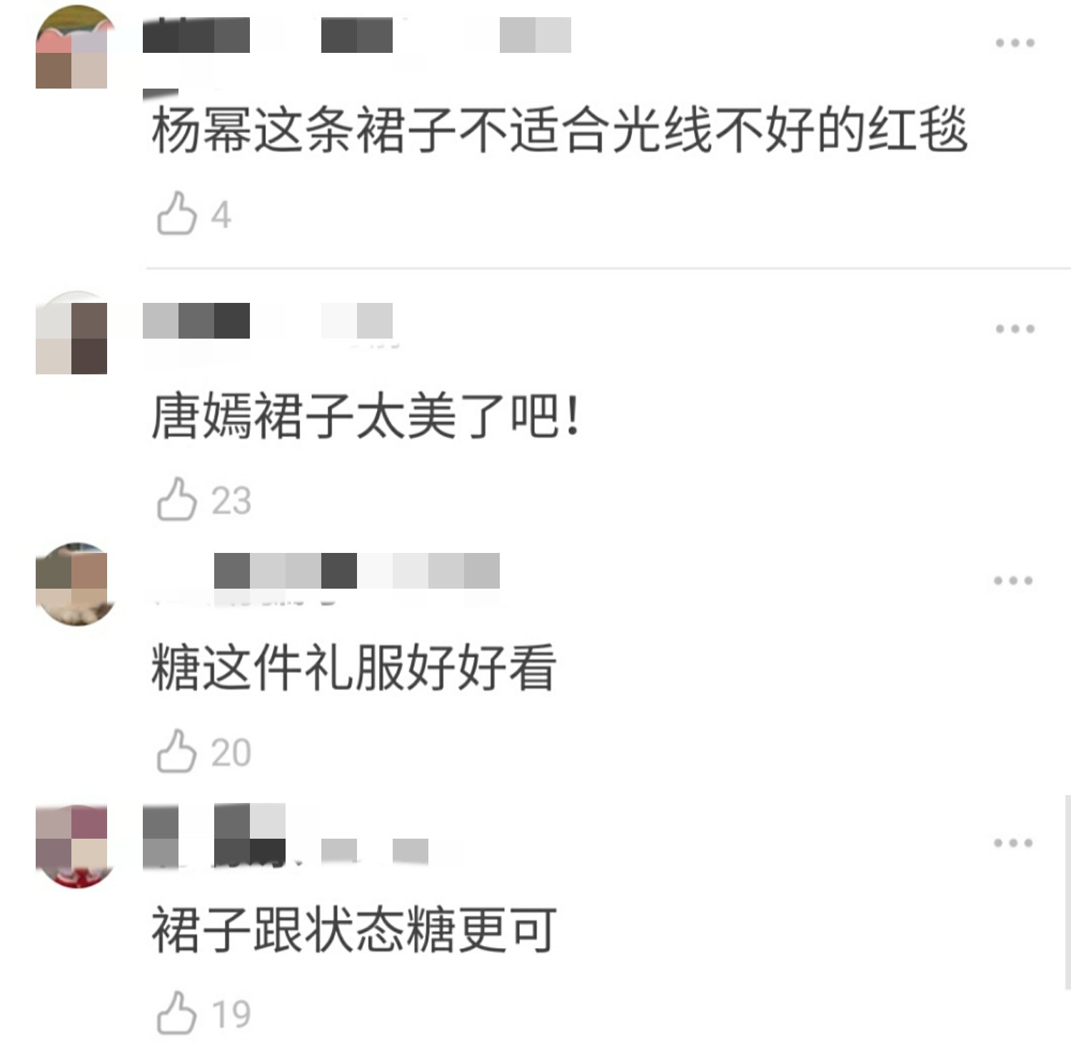 这两位女星的美照被发布在网络上之后也瞬间引发了网友们的热烈留言讨论,不过这次网友审美眼光似乎很一致,绝大多数网友觉得此次唐嫣的服装更胜一筹。有网友夸赞“唐嫣礼服好好看”,有网友直接表示“杨幂裙子不适合光线不好的红毯”。
