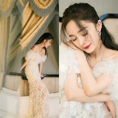 另一位女星杨幂这一次的造型突出了她温婉大气的一面,别出心裁的耳饰和恰到好处的妆容也为她加分不少,她修长的美腿在那条白色镂空鱼尾裙下若隐若现,温暖甜美的表情美得让人无法移开视线,她整个人状态看上去更加从容优雅。