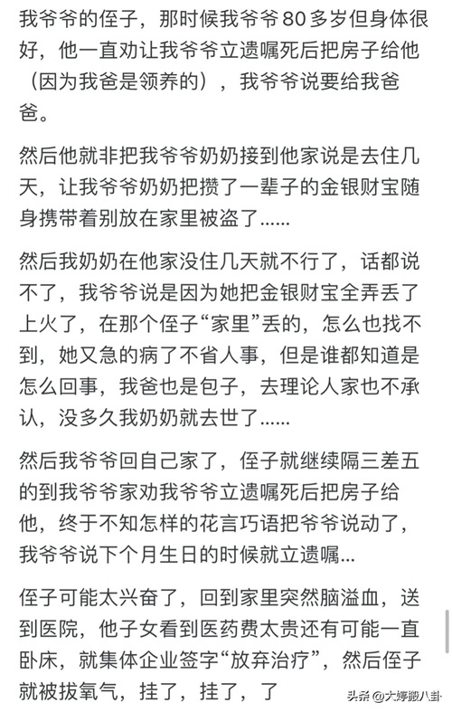 合理怀疑奶奶去世的原因,以及金银财宝在这个侄子家