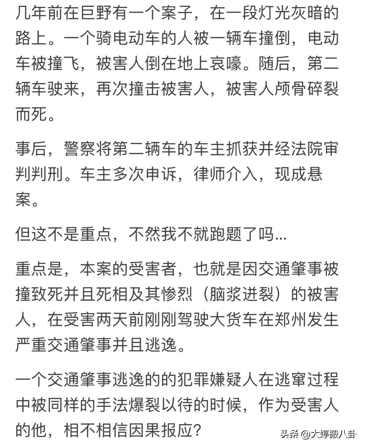 撞人逃逸的过程中,被别人撞了逃逸了,电视剧都不敢这样的巧合拍,真的报应不爽呀