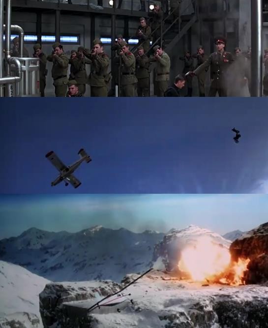 九年前,英国特工詹姆斯·邦德和006号艾里克一起到苏联的秘密武器基地准备炸掉这里的设备,并设定时间为6分钟,此时,警报响起,苏联的乌将军出现,006被擒并遭到枪杀,詹姆斯·邦德凭借气死牛顿的功力,跳到了飞机上,得以逃脱。