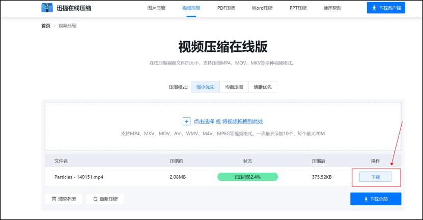 第二步:视频文件经过压缩之后,直接点击【下载】就可以将压缩完成的视频下载下来了。
