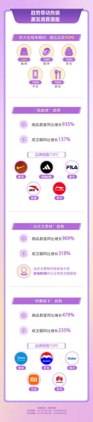 为更好的满足用户在奥运季的消费需求,抖音电商推出 " 热力先锋季 " 主题活动,并发布了「高能感」、「法式尤莱特」、「观赛搭子 」三大「热力先锋趋势」,结合三大趋势生动展示对应的特色商品,助力商家、达人生意增长。数据显示,运动装备、户外用品、滋补健康等「高能感」好物在 " 奥运热 " 带动下,商品成交额同比增长 137%。「法式尤莱特」趋势对应的服饰、美妆等商品成交额同比增长超 3 倍。「观赛搭子」趋势对应的酒水食品、数码家电等观赛 " 必备 " 好物成交额同比增长超 2 倍,美的、茅台、海尔、小米、华为等国货品牌,在 " 奥运季 " 获得新的增长空间。
