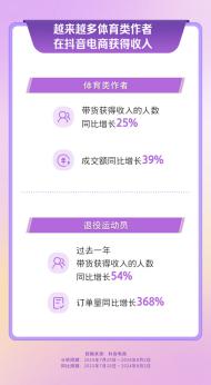除了商品销售的增长,越来越多体育类作者在抖音电商获得收入,退役运动员们也在抖音电商转战人生新赛道。" 热力先锋季 " 主题活动期间,体育类作者带货获得收入的人数同比增长 25%,成交额同比增长 39%,其中退役运动员直播带货成交额环比日常增长超 5 倍。本届奥运期间,多名国内知名乒乓球运动员在抖音电商集体开播,奥运冠军许昕、世界冠军郭焱、世界冠军方博,纷纷开播解读奥运乒乓赛事。# 许昕太全面了 登上抖音热榜第一,其个人品牌 Xuperman 销售火爆,一周年限量纪念版底板周销量上涨超 8 倍。