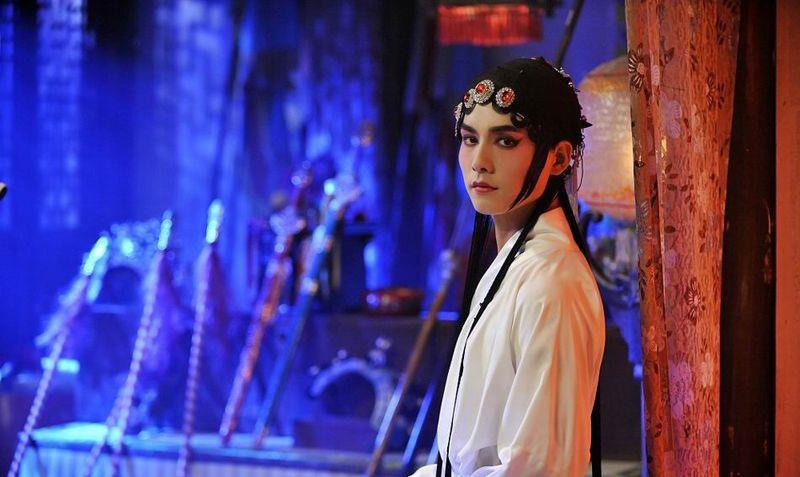 这个戏子造型是2010年5月与唐人电影合作的新概念武侠大戏《怪侠一枝梅》饰演的角色名叫贺小梅。扮上相的他像极了《霸王别姬》中的张国荣,薄薄的嘴唇更是像极了女孩子。