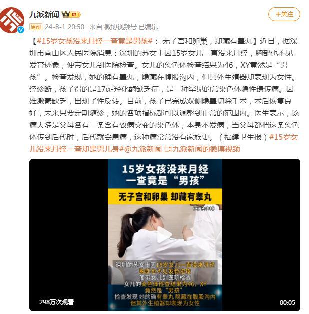 15岁女孩没来月经一查竟是男孩:无子宫和卵巢,却藏有睾丸