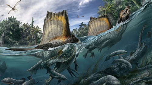 (图片说明:根据棘龙水边的生活习性重建了棘龙造型)