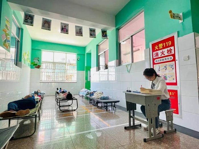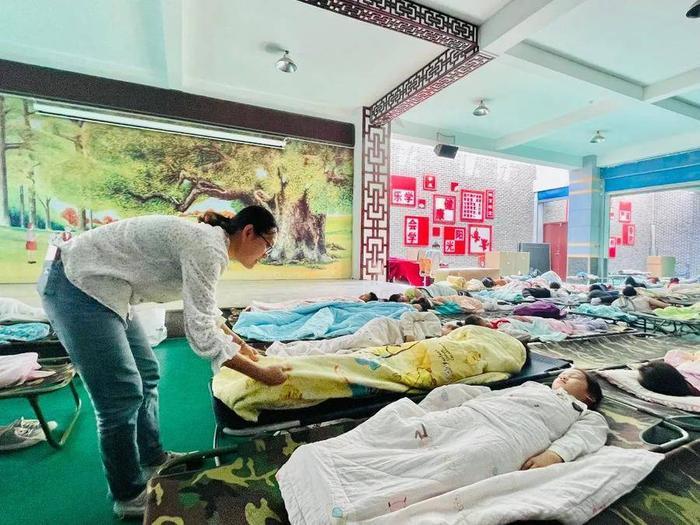 为彻底解决家长最关切的“趴在课桌上午睡”的问题,学校综合考量教室面积、便于收纳等情况,创新性地提出折叠小床方案,每位同学配备一张折叠小床,午餐后由值班老师统一带到指定午休区域午睡。值班老师一边备课、批改作业,一边看护孩子午睡。各年级指定的午休区域每日都会进行消毒、清扫,保障孩子睡得安心,睡得舒适。
