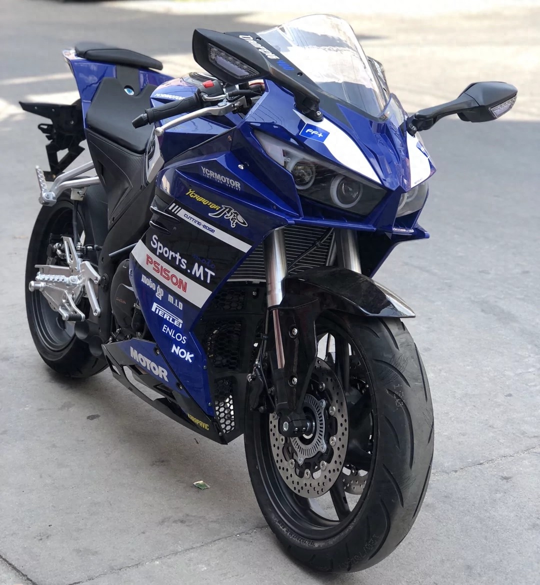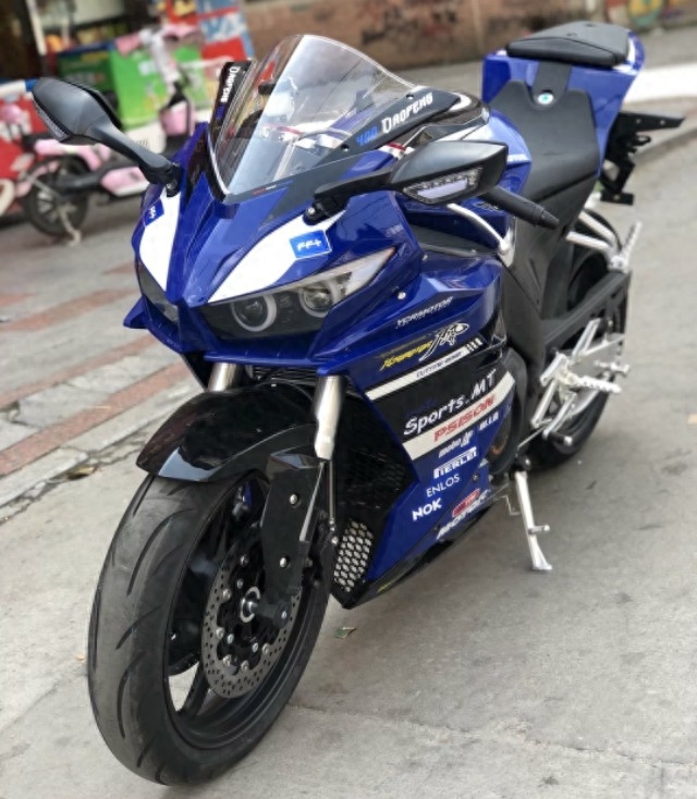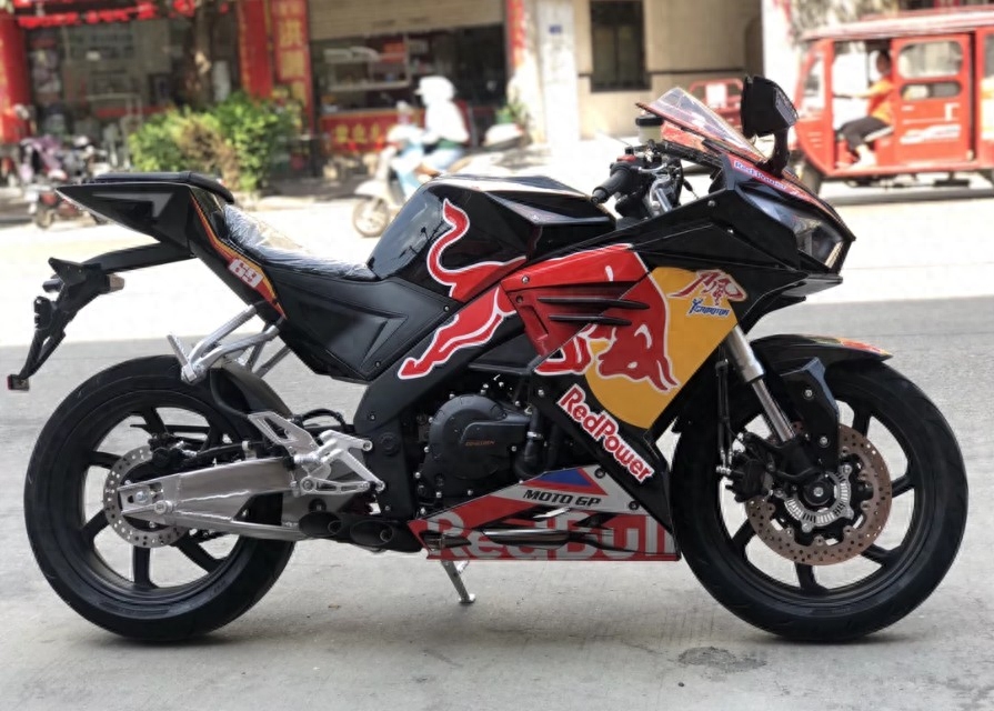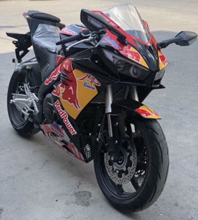 它的外观方面相对于国内的很多摩托车设计可以说是很不错的,车身棱角分明,车头具有很高的辨识度,犀利的大灯设计给人很强的冲击感,让人很快就能认出这款车的车型。