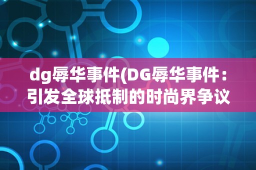 dg辱华事件(DG辱华事件:引发全球抵制的时尚界争议)