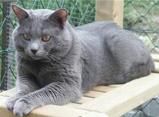 夏特尔猫,英文名称:Chartreux,白色锁。毛尖着色,胎痣条纹或被毛色的变异。棕色或红色的作重色。