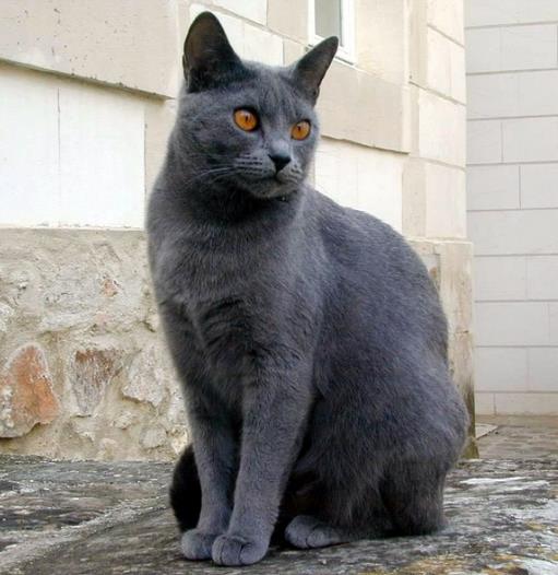 夏特尔猫体型稍胖,毛色为蓝灰色,这是夏特尔猫最大的特色。它那一身蓝灰色的弹性披毛,既厚又柔软,并且闪耀美丽光泽,极具魅力,属于皮毛略长的短毛种猫。头稍大呈圆形,配上一对鼓鼓的双颊,金黄色的眼睛圆大明亮,表情丰富,看起来颇为聪明可爱。